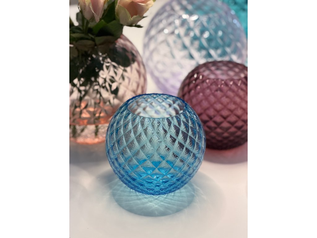 Ručně foukaná kulatá váza Dahlia se zajímavým hvězdnicovitým vzorem oživí každý interiér a ozdobí svým oblým tvarem slavnostní stůl, komodu i odkládací stolek. V unikátním vzoru se při dopadu slunečních paprsků rozehrává jedinečné kouzlo hry světla a stínu. Každý kus je výsledkem precizní ruční výroby.